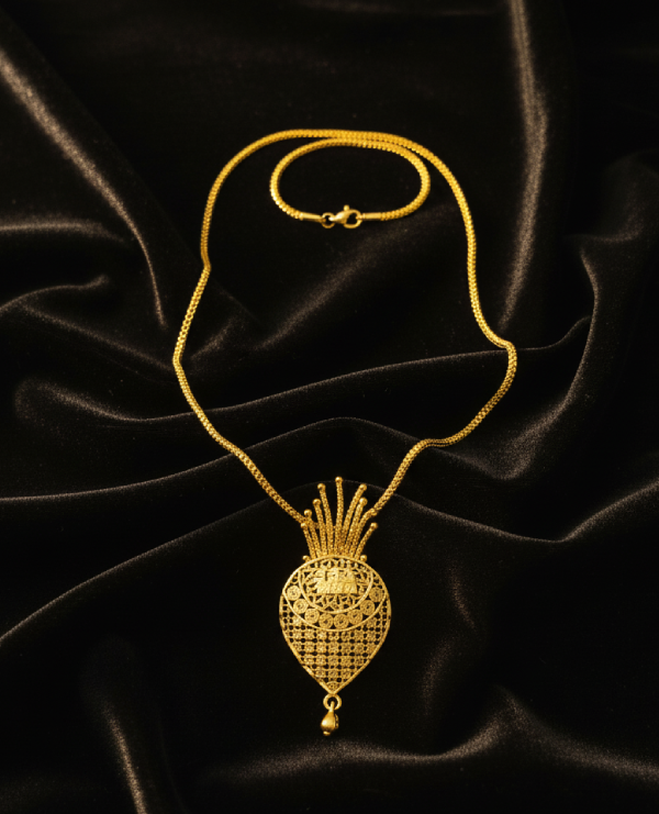 This beautiful gold piece is crafted not just for stunning looks, but for enduring wear. Made with usable quality, it offers the perfect blend of traditional elegance and modern durability. The rich shine of the gold, combined with the sparkling accents, makes it a versatile accessory for any occasion